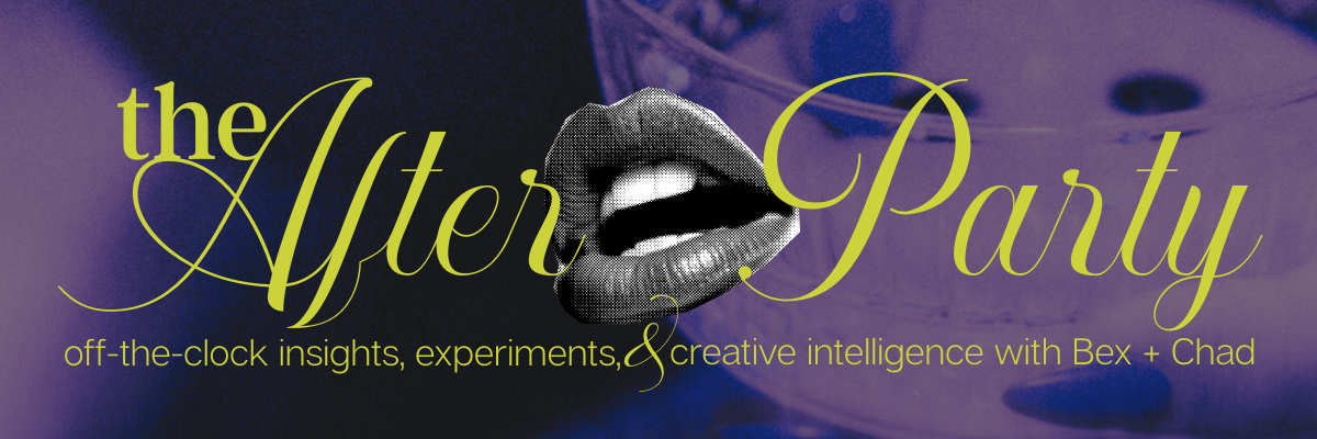 The After Party is your monthly access to off-the-clock insights, experiments, and creative intelligence with me, Bex. It's where I show you what I'm actually building, what's worth your attention, and how to make AI work for your creative brain—not someone else's workflow.