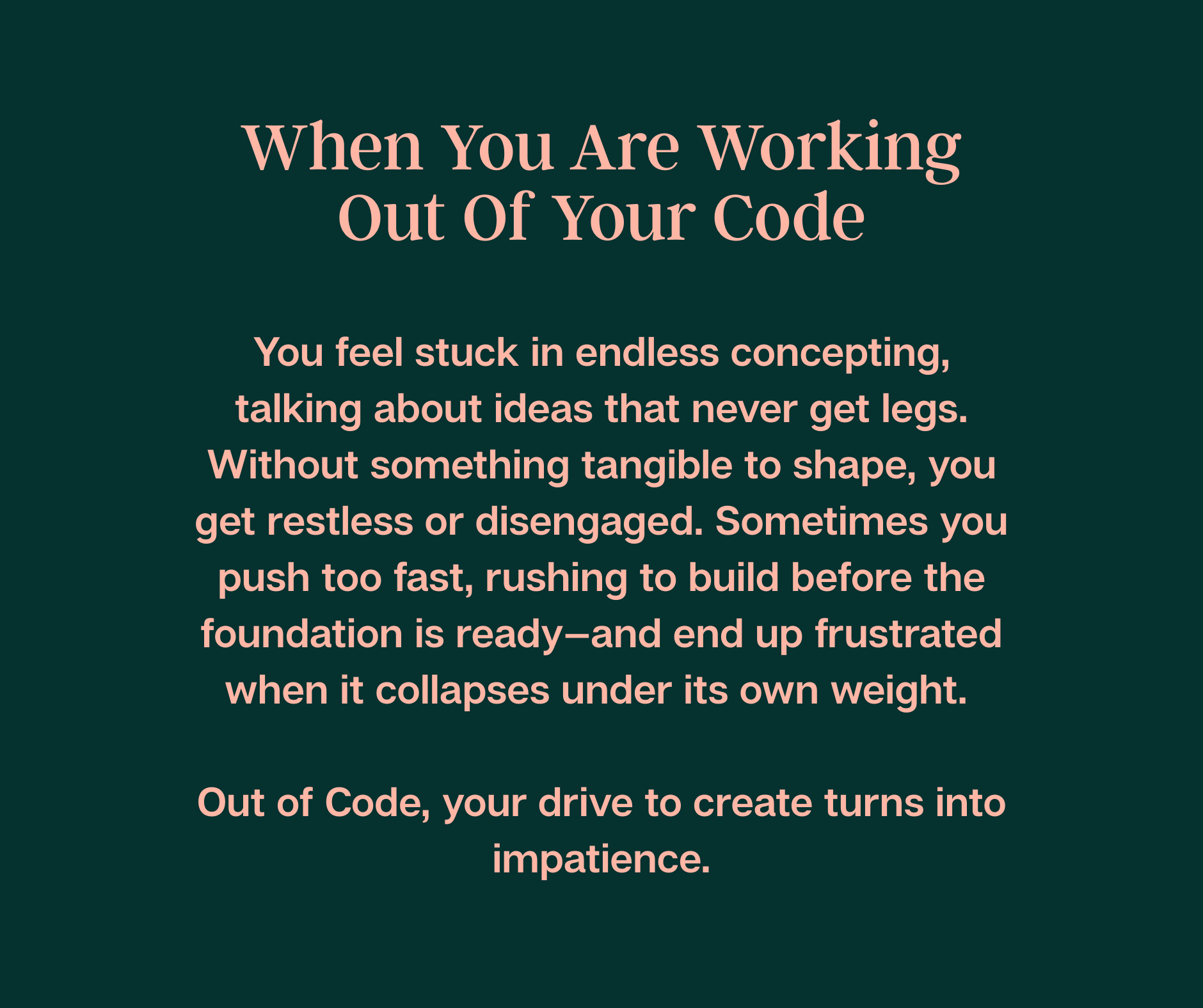 You’re wired to make ideas real—but when you’re forced to sit in theory, you lose patience. You disengage when the talk doesn’t turn into action. On the flip side, sometimes you rush too soon, hammering out a build before the foundation is ready, and frustration follows when it breaks under pressure.