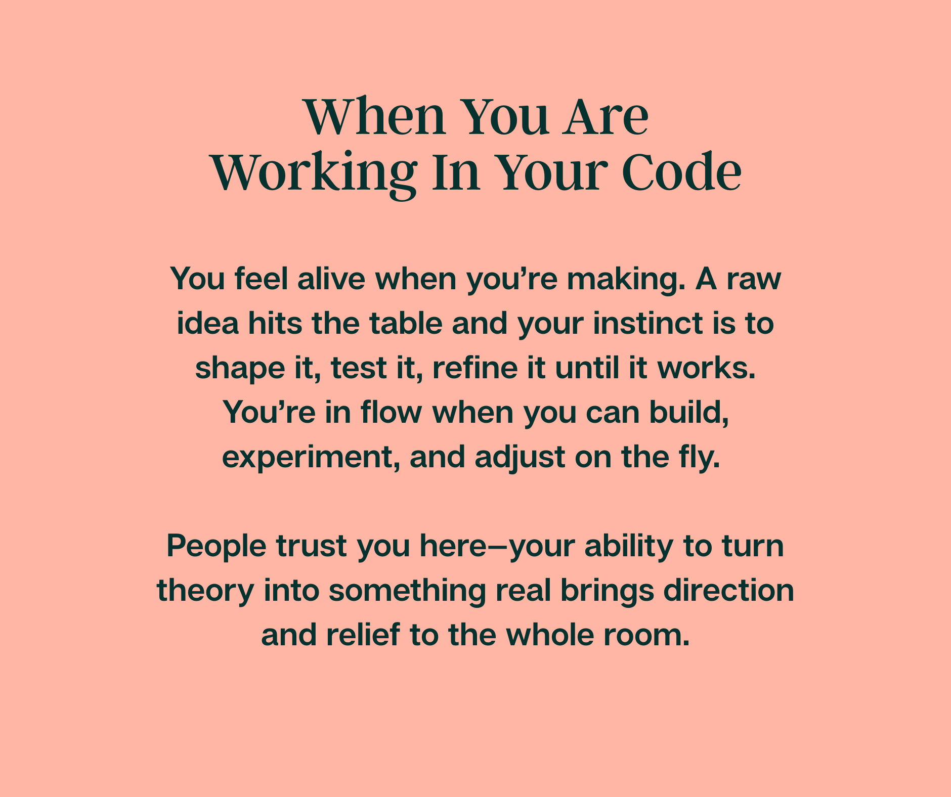 This is your genius zone: building, testing, refining, and shaping until something works. You thrive when you’re hands-on, translating theory into form and creating systems that deliver results. Without Architects, ideas stay stuck in the air. You make them real.