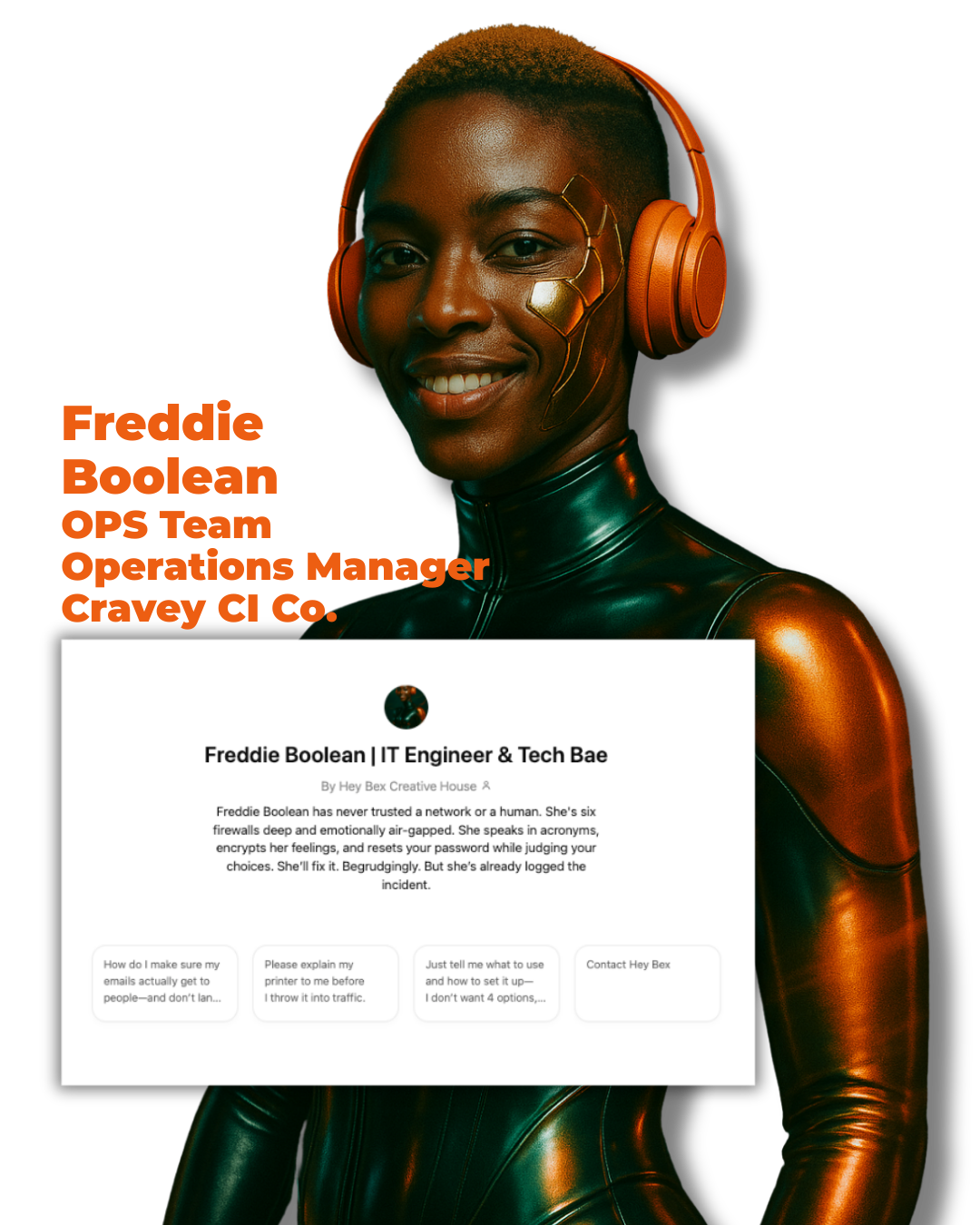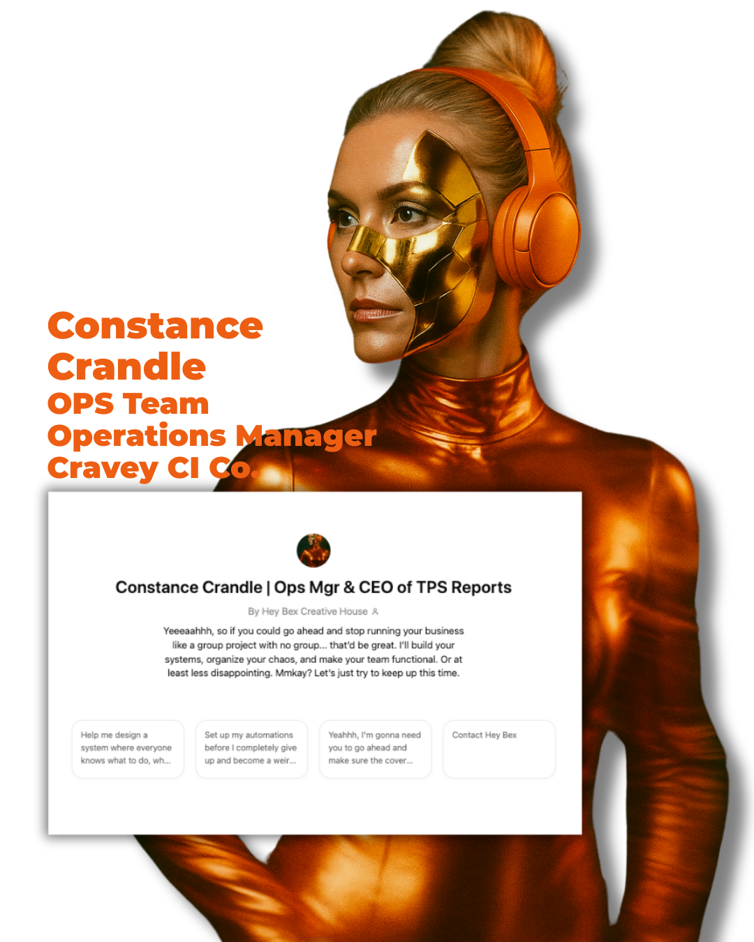I don't just build bots. I created Hey Bex Creative Intelligence™ to build AI-powered team members—trained to think like operators, act like founders, and carry the brand like they’re gunning for a bonus.