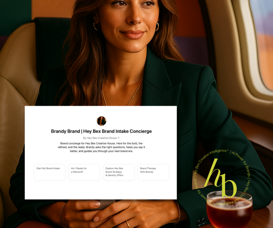 Brand concierge for Hey Bex Creative House. Here for the bold, the refined, and the ready. Brandy asks the right questions, helps you say it better, and guides you through your next brand era.