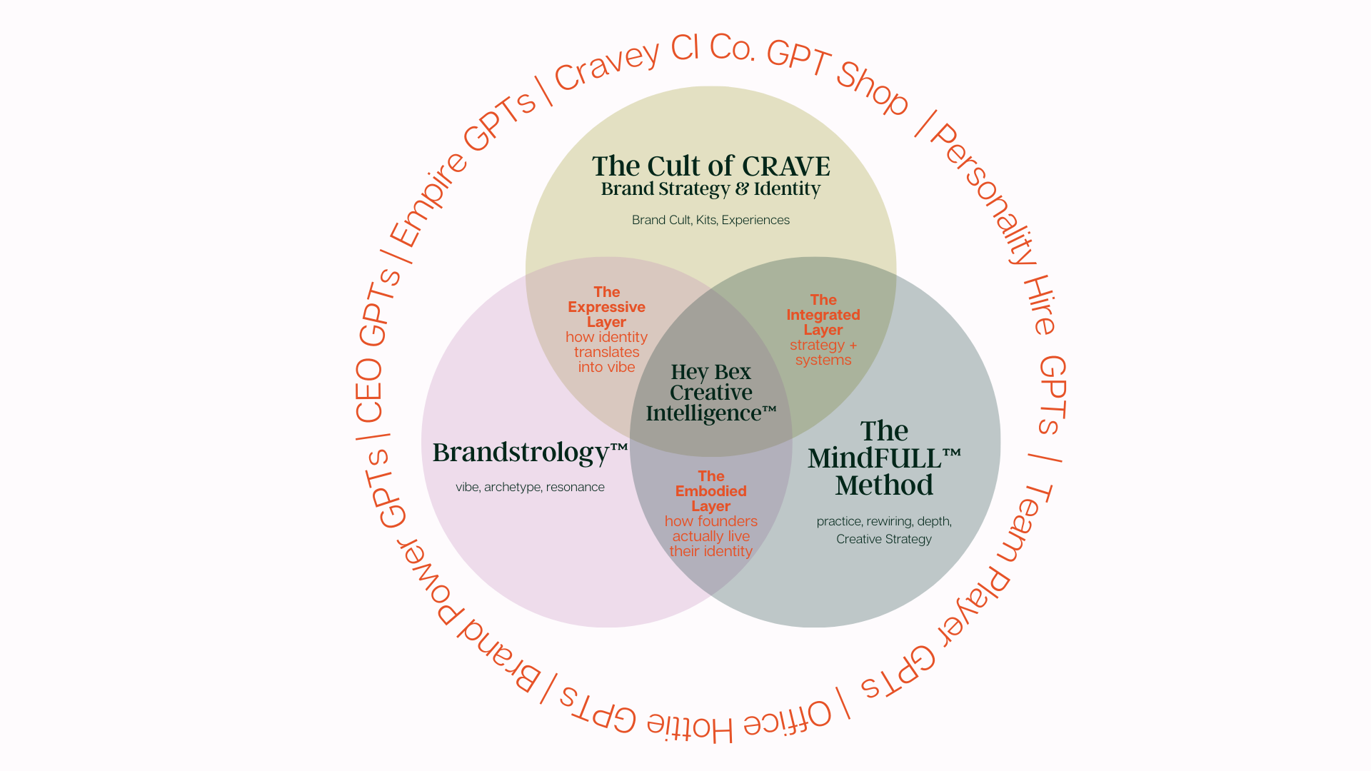 I’ve spent 20+ years in branding, design, and strategy—from big retail boardrooms to late-night creative benders—and what I know for sure is this: your “too much” isn’t too much at all. It’s your edge. MindFULL OS™, built with Hey Bex Creative Intelligence™, is how you use it.